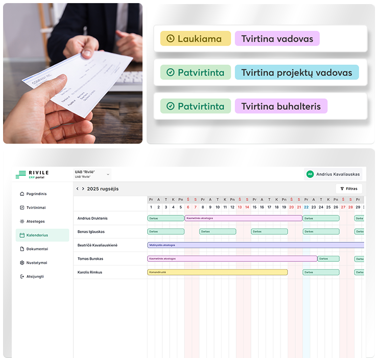Modernus darbuotojų savitarnos portalas integruotas su Rivile ERP verslo valdymo ir apskaitos sistema